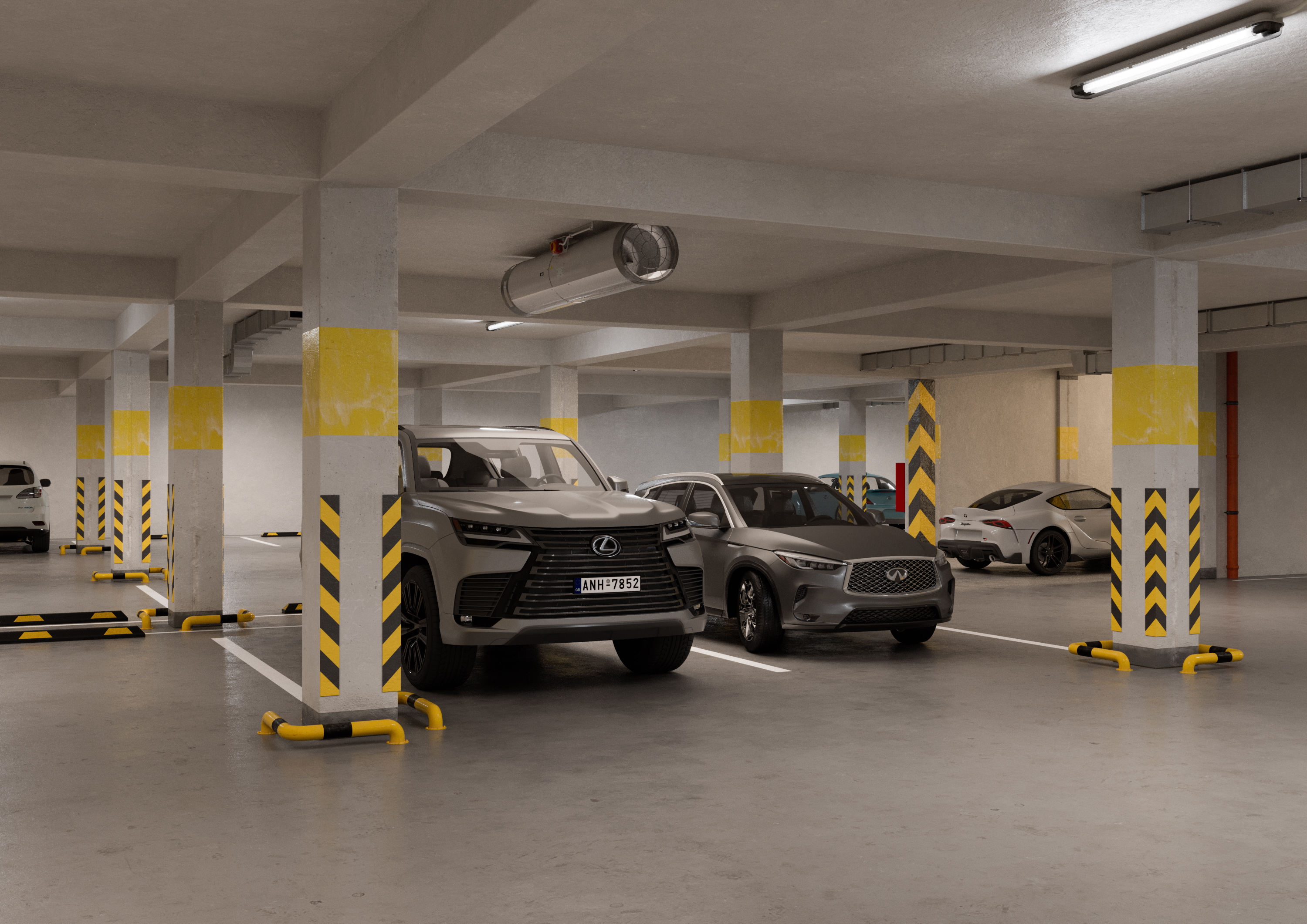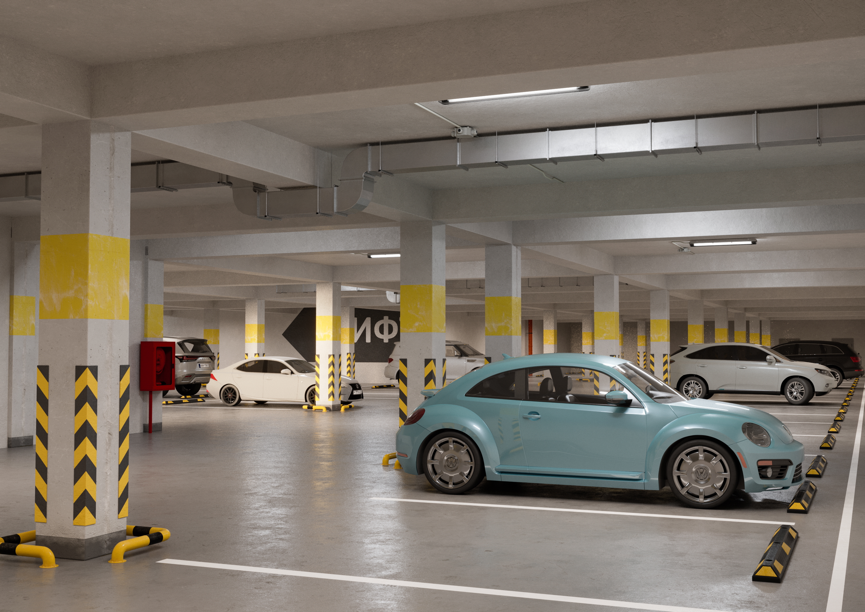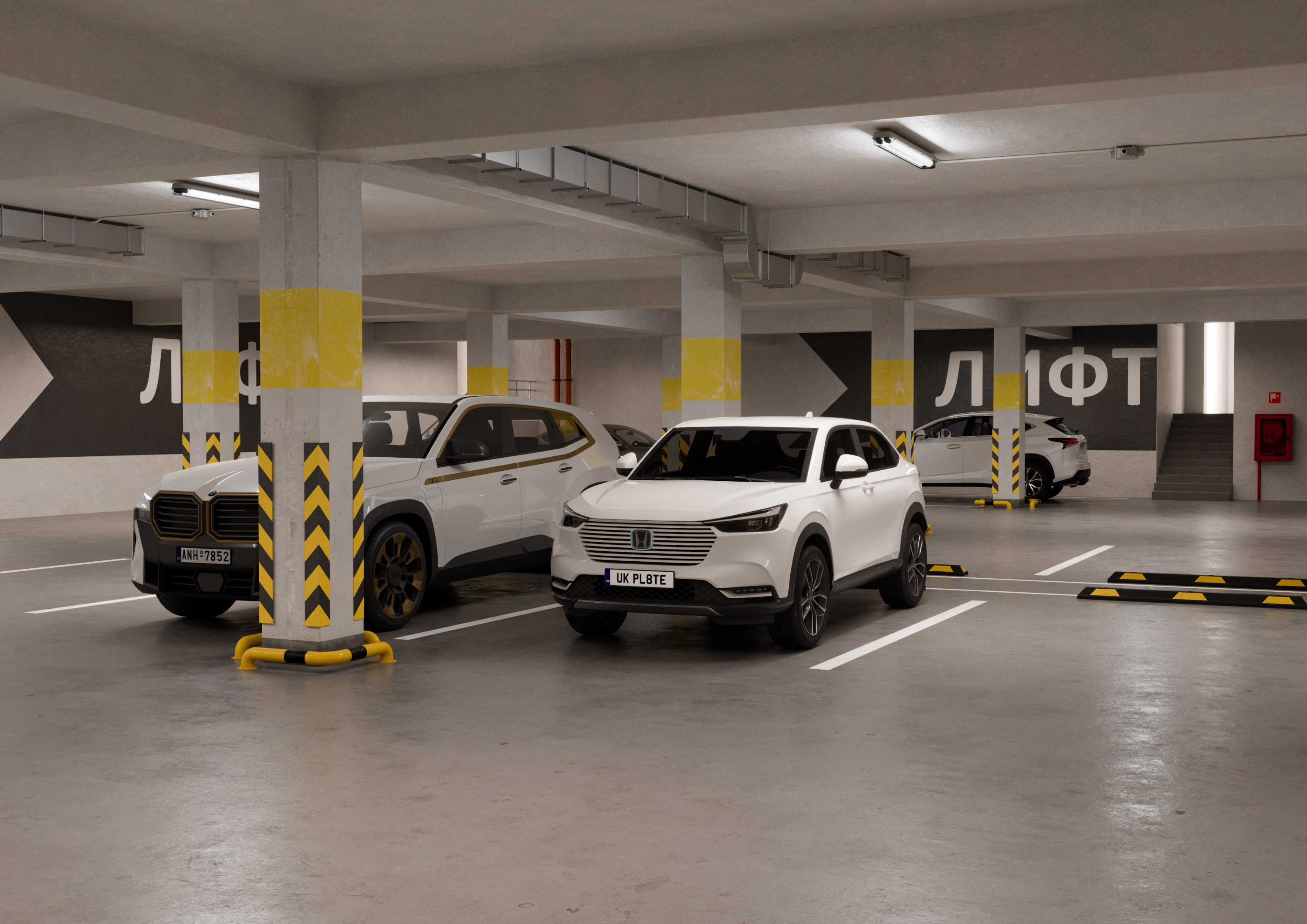 На одноуровневой подземной парковке будет размещено 63 парковочных места. Площади парковочного места достаточно не только для классических авто, но и для внедорожников.